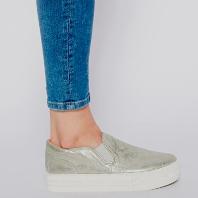 Fashionista perkotaan mengenakan sepatu kets pada wedge